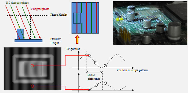 SAKI BF-3Di AOI SAKI在線在線AOI自動光學檢測儀BF-3Di功能簡介: 1.1 投影系統原理 - 2D + 3D 檢測 SAKI在線在線AOI自動光學檢測儀BF-3Di可以同時獲取2D和3D的圖像